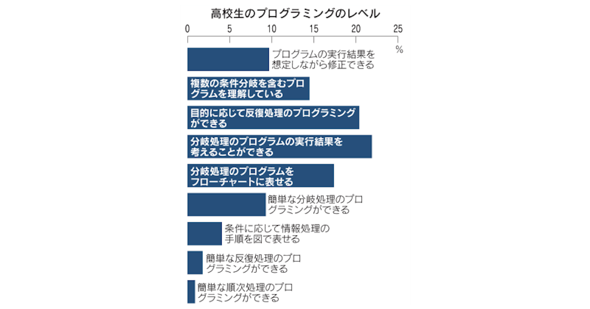 文部科学省が「プログラミング能力の調査を初めて実施した」、というのにも今更感があって驚きですが、その調査内容もあまり褒めれらたものではないようです。